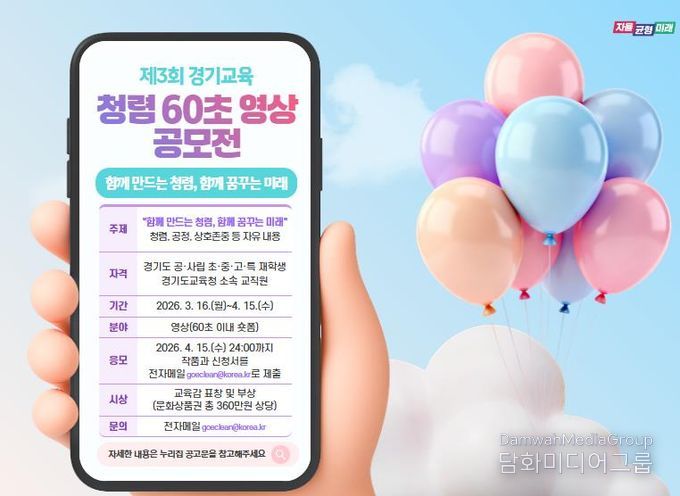 시민행정신문 기자 | 경기도교육청이 ‘함께 만드는 청렴, 함께 꿈꾸는 미래’를 주제로 제3회 청렴 60초 영상 공모전을 개최한다.