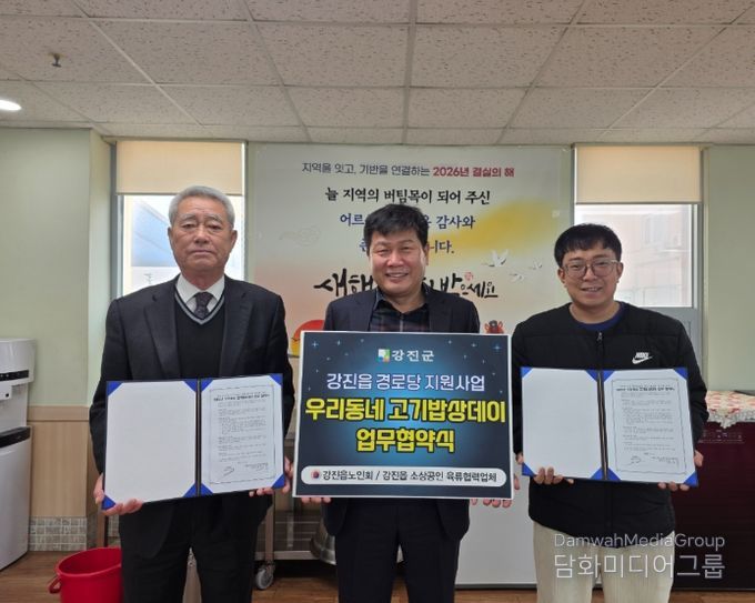 시민행정신문 강갑수 기자 | 강진읍 노인회가 지난 4일, 2026년 ‘우리동네 고기밥상데이’ 사업의 원활한 추진을 위해 강진읍 소상공인 육류협력업체와 업무협약을 체결했다.