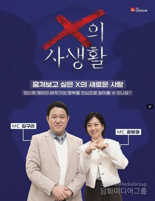오는 3월 17일(화) 밤 10시 첫 방송되는 TV CHOSUN ‘X의 사생활’은 이혼한 전 배우자의 일상을 지켜보는 리얼 관찰 프로그램이다. 한때는 누구보다 가까웠지만 이제는 ‘남보다 못한 사이’가 된 두 사람이 각자의 삶을 살아가는 모습을 통해 관계가 끝난 뒤에도 남아 있는 감정과 변화의 과정을 담는다. 일명 ‘이혼 부부들의 입장 정리 리얼리티’로, MC 김구라와 장윤정을 중심으로 패널 천록담, 정경미가 합류해 환상의 라인업을 완성했다.