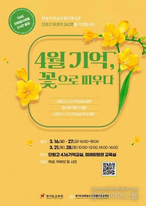 시민행정신문 기자 | 경기도교육청4.16생명안전교육원이 '4월 기억, 꽃으로 피우다’프로그램 참가자를 모집한다.