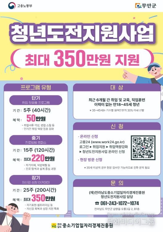 모집은 예산 소진 시까지 상시 진행되며 신청은 고용24 누리집 또는 전남일자리종합센터(무안군 삼향읍 오룡3길 2)를 방문해 할 수 있다.