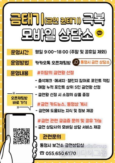 차현수 보건소장은 “금연은 결심보다 유지가 더 힘든 과정인 만큼, 언제 어디서든 전문가의 도움을 받을 수 있는 모바일 상담 서비스가 큰 힘이 될 것”이라며 “앞으로도 시민들의 건강한 삶을 위해 담배 연기 없는 통영을 만드는 데 최선을 다하겠다”고 전했다.