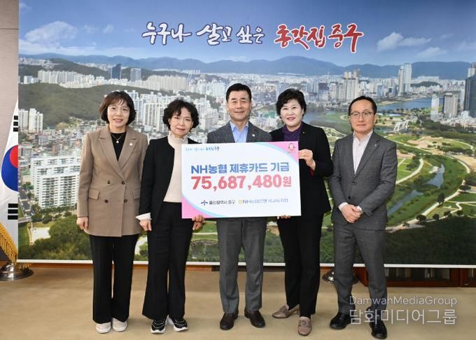 이날 전달된 기금은 지난 한 해 동안 중구가 NH농협은행 제휴카드를 사용하며 쌓은 적립금이다.
