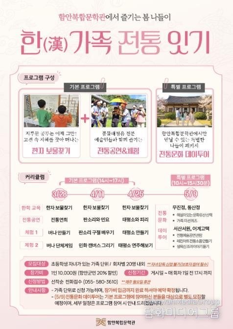 함안복합문학관 관계자는 “이번 프로그램은 온 가족이 함께 전통의 맥을 잇고 소통하는 기회를 마련하고자 기획했다”며 “전통 예술 체험과 문화유산 답사로 가족 간 유대감을 높이고 우리 전통문화에 대한 자긍심을 키우는 계기가 되길 바란다”고 전했다.