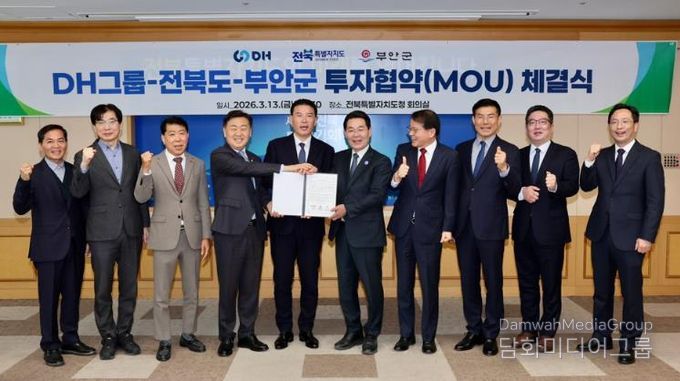 시민행정신문 강갑수 기자 | 부안군은 전북특별자치도와 함께 13일 전북특별자치도청에서 ㈜DH그룹과 1500억원 규모의 부안 제3농공단지 투자협약(MOU)을 체결했다고 밝혔다.