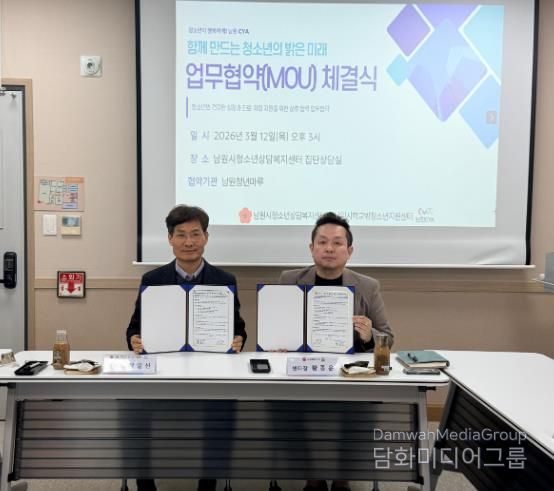 시민행정신문 강갑수 기자 | 남원시가 위탁하고 남원CYA가 운영하는 남원시학교밖청소년지원센터는 지난 12일 남원청년마루와 학교 밖 청소년의 건강한 성장과 자립 지원을 위한 업무협약(MOU)을 체결했다고 밝혔다.