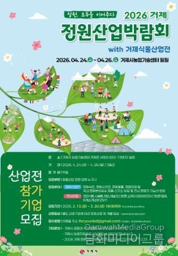 시민행정신문 강갑수 기자 | 정원식물과 다양한 정원자재를 한자리에서 만나볼 수 있는‘2026 거제정원산업박람회’가 오는 4월 24일부터 26일까지 3일간 거제시 농업기술센터 일원에서 개최된다.