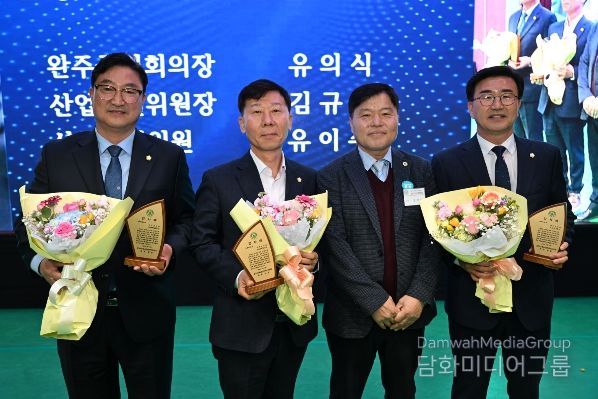 시민행정신문 강갑수 기자 | 완주군의회 유의식 의장과 김규성, 유이수 의원이 13일 지역 농업 발전과 농업인 권익 증진에 기여한 공로를 인정받아 한국후계농업경영인 완주군연합회로부터 감사패를 수상했다.