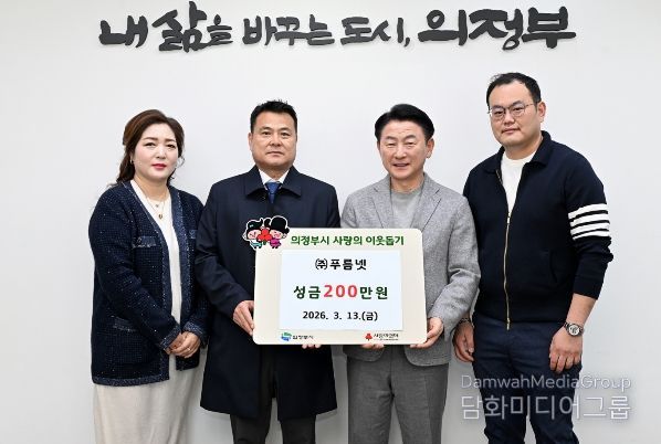 시민행정신문 강갑수 기자 | 의정부시는 3월 13일 남양주시 소재 ㈜푸름넷(대표 김수태)이 성금 200만 원을 기부했다고 밝혔다.