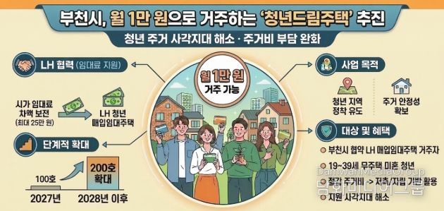 이에 부천시는 LH와 협력해 ‘청년드림주택’ 모델을 구상하고 있다. 지원 기간은 최대 2년으로, 청년이 절감한 주거비를 저축이나 자립 기반으로 활용하도록 돕는 것이 핵심 취지다.