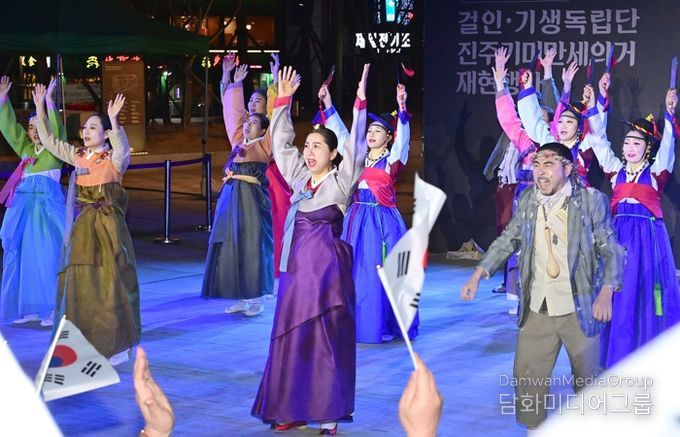 시민행정신문 기자 | 3.1운동 107주년을 기념해 지난 13일 오후 6시 30분 진주대첩 역사공원 호국마루에서 ‘진주걸인·기생독립단 만세운동’ 재현 행사가 열렸다.