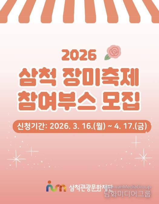 시민행정신문 강갑수 기자 | 삼척관광문화재단은 3월 16일부터 4월 17일까지 ‘2026 삼척장미축제’를 함께할 참여부스를 모집한다고 밝혔다.