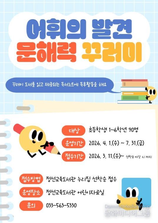 시민행정신문 기자 | 정선교육도서관은 초등학생의 기초 언어 능력과 읽기 역량 강화를 위해 4월 1일부터 7월 31일까지 어린이자료실에서는 어휘의 발견 ‘문해력 꾸러미’를 운영하며, 학교 연계로는 달려라! ‘문해력 북꾸러미’를 운영한다.