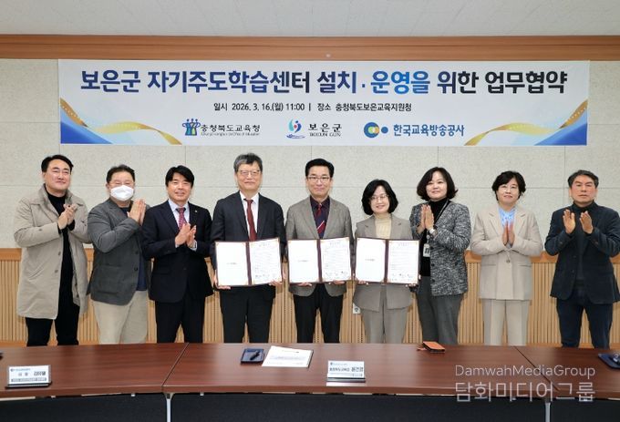 시민행정신문 기자 | 충청북도교육청은 16일, 보은교육지원청에서 보은군, 한국교육방송공사와 보은군 자기주도학습센터 설치‧운영을 위한 업무협약을 체결했다.