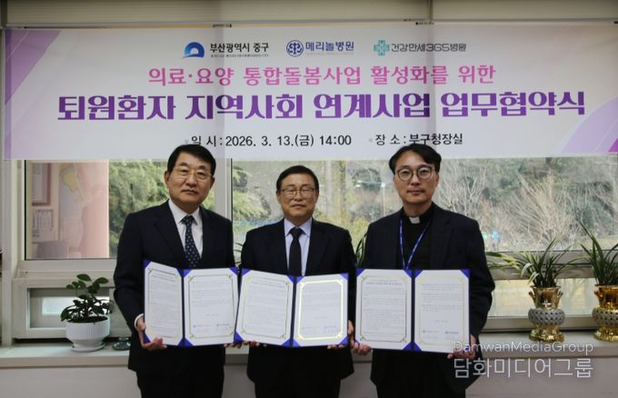 시민행정신문 기자 | 부산 중구는 지난 13일 의료·요양 통합돌봄사업 본격 시행을 앞두고 지역 의료기관(메리놀병원, 건강만세365병원)과'퇴원환자 지역사회 연계사업 업무협약'을 체결했다.