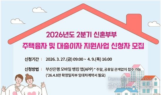 지원을 희망하는 시 거주 무주택 신혼부부는 오는 3월 27일 오전 9시부터 4월 9일 오후 4시까지 부산은행 모바일 뱅킹 앱을 통해 신청할 수 있다.
