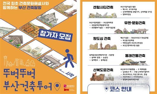 시민행정신문 강갑수 기자 | 부산시는 (사)부산국제건축제조직위원회와 함께 올해 12월까지 매주 주말 '뚜벅뚜벅 부산건축투어'를 운영한다고 밝혔다.