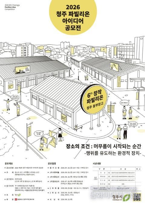시민행정신문 강갑수 기자 | 청주시는 창의적인 사고와 열정을 가진 19세부터 34세까지의 청년을 대상으로 ‘2026 제6회 청주 파빌리온 아이디어 공모전’을 개최한다고 17일 밝혔다.
