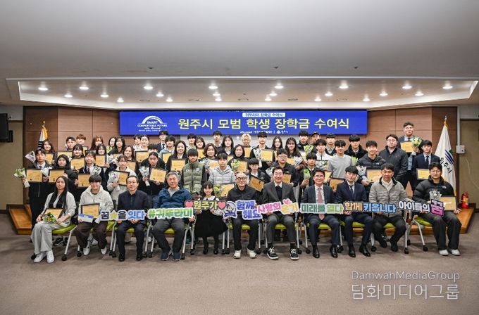 시민행정신문 강갑수 기자 | 원주시는 17일 오전 10시, 시청 지하 1층 다목적홀에서 귀뚜라미문화재단 장학금 및 장학증서 수여식을 개최하고, 예체능 분야에서 재능과 성장 가능성을 보인 지역 중·고등학생 50명에게 장학금을 전달했다.