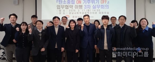 시민행정신문 김학영 기자 | 경상남도는 17일 오후 2시 경남사회적경제혁신타운 대회의실에서 한국농어촌공사, 한국산업단지공단, 한국남동발전 등 협약기관 실무자들이 참석한 가운데 ‘탄소중립 ON 기후위기 OFF’ 업무협약 이행을 위한 3차 실무회의를 개최했다고 밝혔다.