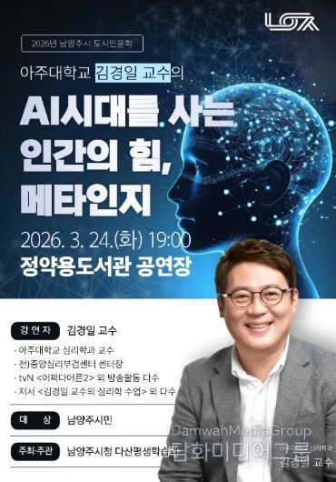 시민행정신문 기자 | 남양주시는 오는 3월 24일 정약용도서관 공연장에서 시민 300여 명을 대상으로 도시인문학 특강 ‘AI시대를 사는 인간의 힘, 메타인지’를 개최한다고 17일 밝혔다.