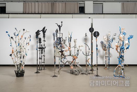 신작은 인천아트플랫폼 전시장 약 5미터 높이의 벽면 전체를 활용해 제작한 장소특정형 설치 작업이다. 드로잉, 조각, 연구 자료, 작가의 메모 등을 하나의 벽면에 펼쳐 보이며 가상의 존재를 해부학과 분류학의 형식으로 탐구해온 약 20년의 작업 과정을 하나의 작업 지도처럼 보여준다.
