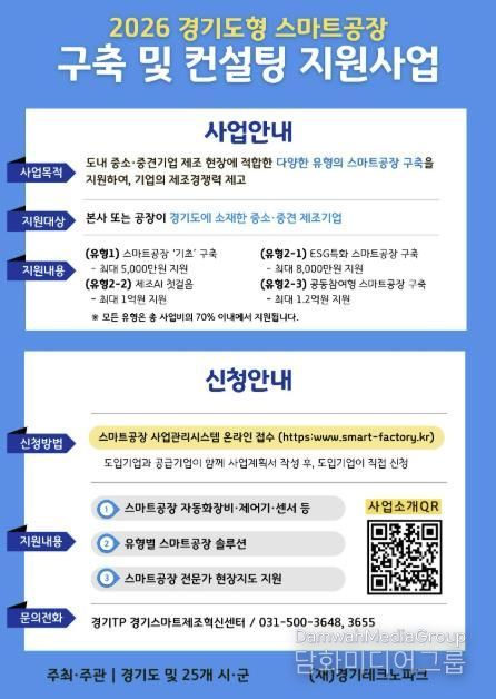 시민행정신문 강갑수 기자 | 수원특례시가 경기도와 함께 ‘2026년 경기도형 스마트공장 구축 및 컨설팅 지원사업’ 참여 기업을 공모한다. 경기도 22개 시군 소재 중소제조기업을 지원하는데, 수원시 기업은 4개사를 선정할 예정이다.