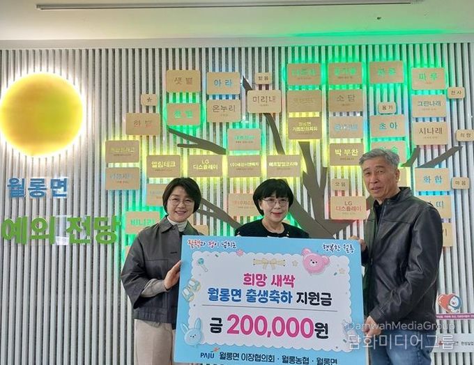 ‘희망 새싹’출생 축하 지원금은 월롱면에서 태어나 현재 월롱면에 거주 중인 출생아 가정을 대상으로, 아이의 탄생을 축하하는 의미를 담아 월롱면 이장협의회가 마련한 지원 사업이다.