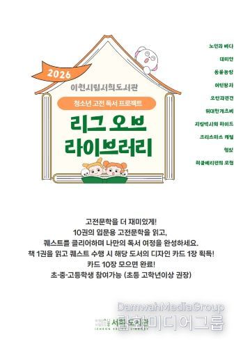이번 프로그램은 2025년 이천시 독서문화브랜드 ‘이천이책’ 사업의 일환으로 운영됐던 청소년 독서 챌린지 ‘리그 오브 라이브러리’의 성과를 바탕으로, 운영 주체를 서희도서관으로 전환하여 지속 추진하는 사업이다.