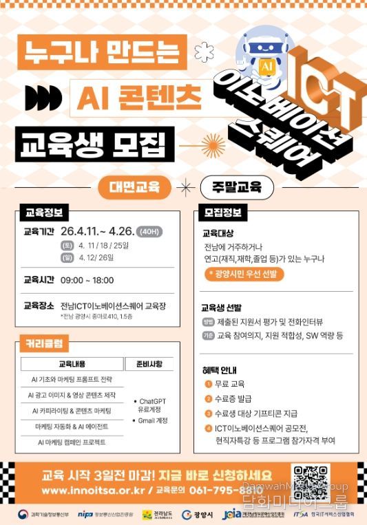 한편, 이번 교육은 과학기술정보통신부와 정보통신산업진흥원이 주관하고, 전라남도와 광양시가 지원하며, (재)전남정보문화산업진흥원과 한국IT서비스산업협회가 협력해 추진하는 국가직접지원사업의 일환으로 운영된다.