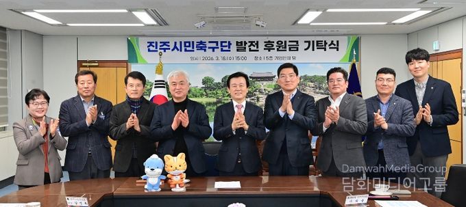 시민행정신문 강갑수 기자 | 진주시는 18일 진주시청 기업인의 방에서 NH농협 진주시지부와 경남은행의 ‘진주시민축구단 발전을 위한 후원금 전달식’을 개최했다고 밝혔다.
