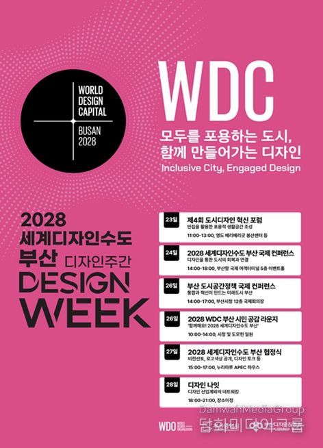 또한 26일에는 시청 및 도모헌 일원에서 2028 세계디자인수도 부산 시민 공감 라운지가 열려 ‘2028 WDC 캠페인’을 전개한다.