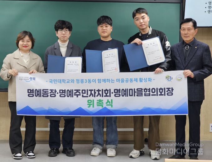 시민행정신문 강갑수 기자 | 서울 성북구 정릉3동주민센터가 지난 3월 17일 사랑교회에서 제9기 명예단체장 위촉식을 열고 국민대학교 학생 3명을 명예동장, 명예주민자치회장, 명예마을협의회장으로 각각 위촉했다.