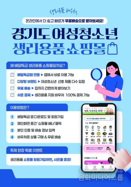 경기도 여성청소년 생리용품 보편지원 사업은 11~18세 여성청소년에게 지역화폐(생리용품 바우처)를 지원하는 정책이다. 경기도주식회사는 비대면 구매를 선호하는 청소년의 소비 행태를 반영해 전용 쇼핑몰을 운영 중이다. 쇼핑몰을 통해 ▲직접 방문의 번거로움 해소 ▲대면 구매 시 발생하는 심리적 불편 완화 ▲무료 배송 등을 통해 정책 체감도를 높이고 있다.