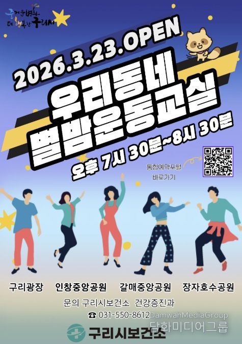 백경현 구리시장은 “저녁 시간대 누구나 부담 없이 참여할 수 있는 프로그램을 통해 시민들의 신체활동을 활성화하고 건강한 지역사회 조성에 이바지하겠다”라며 “앞으로도 시민 건강 증진을 위한 다양한 프로그램을 지속적으로 운영해 나가겠다”라고 말했다.