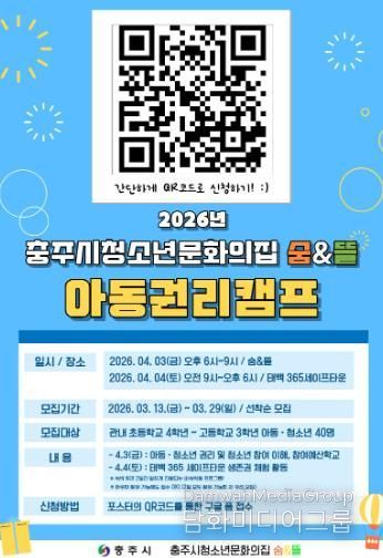 시민행정신문 강갑수 기자 | 충주시청소년문화의집 숨&뜰은 오는 4월 3일부터 4일까지 아동 권리 보장을 위한‘2026년 아동권리캠프 프로그램’을 진행한다.