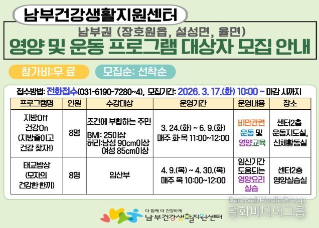 센터 관계자는 “주민들의 건강 증진을 위한 다양한 운동·영양 프로그램을 운영하고 있다”라며 “앞으로도 지역 특성과 주민 수요를 반영한 건강 증진 프로그램을 지속적으로 확대해 나가겠다”라고 밝혔다.