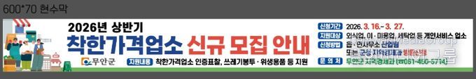 신청 대상은 무안군에서 실제 운영 중인 외식업, 세탁업, 이·미용업, 숙박업 등 개인서비스 업종이다.
