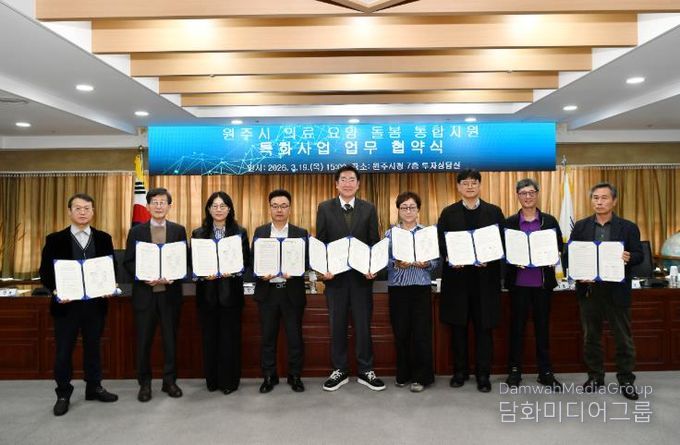 시민행정신문 기자 | 원주시는 지난 19일 시청에서 ‘의료·요양·돌봄 통합지원’ 특화사업 추진을 위한 업무협약식을 개최했다.