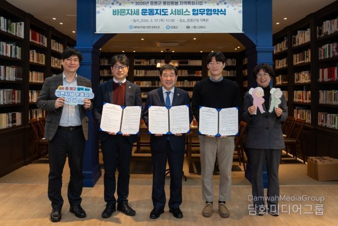 시민행정신문 기자 | 충북 증평군은 19일 군청 기록관에서 대한물리치료사협회 충북도회(회장 정강훈), ㈜헬스앤워크(대표 강철진)와 통합돌봄 지역특화사업 ‘바른자세 운동지도 서비스’ 추진을 위한 업무협약을 체결했다.