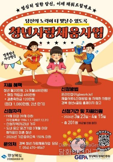 시민행정신문 기자 | 경상북도는 중소‧중견기업에 근무하는 청년근로자의 복지향상과 지역정착을 유도하기 위해 ‘경북 청년 사랑채움사업’과 ‘경북 청년 행복카드 지원사업’ 참여자를 3월 23일부터 4월 15일까지 모집한다.