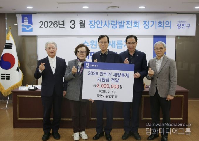 시민행정신문 강갑수 기자 | 수원시 장안구 대표 봉사단체 장안사랑발전회가 지난 19일, '2026 만석거 새빛축제'의 성공적인 개최를 응원하며 지원금 200만원을 전달했다.
