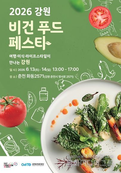 한편 「2026년 강원 비건 푸드 페스타」는 6월 13일부터 14일까지 춘천 먹거리복합문화공간 화동2571에서 개최될 예정이며, 비건 음식 체험과 다양한 행사를 통해 지속 가능한 먹거리 문화 확산에 기여할 계획이다.