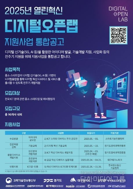 신청 대상은 경기도에 사업장을 둔 중소기업 또는 스타트업이다. 디바이스나 관련 서비스 개발 역량을 보유한 기업이라면 열린혁신 디지털 오픈랩 공식 누리집을 통해 온라인으로 신청할 수 있다.