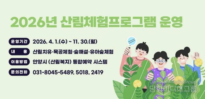 시민행정신문 강갑수 기자 | 안양시는 4월부터 서울대 안양수목원을 비롯한 관내 수목원에서 ‘산림체험 프로그램’ 운영을 시작하며, 현재 통합예약시스템을 통해 사전 예약을 접수 중이라고 23일 밝혔다.