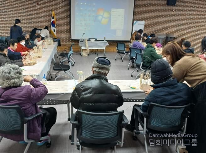 이날 진행된 활동은 라탄공예 ‘원형트레이’제작으로, 참여자들은 라탄을 한 올 한 올 엮고 고정하는 과정을 통해 손의 협응력과 소근육 기능을 강화하고, 촉각 자극을 통해 신체 기능 유지에 도움을 받게 된다.