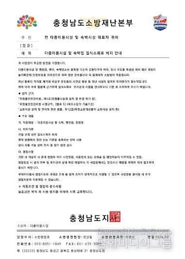 홍성소방서는 소방기관에서는 어떠한 경우에도 개인 명의 계좌로 물품 대금을 요구하지 않으며, 전화로 선입금을 요청하는 일 또한 없다고 강조했다. 아울러 모든 물품 구매는 공문서와 정식 계약 절차에 따라 진행된다고 밝혔다.