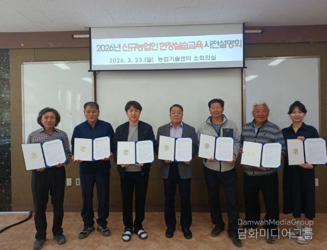 시민행정신문 이세훈 기자 | 증평군농업기술센터는 지난 23일 귀농 연수생 및 선도 농가와 2026년 신규농업인 현장실습 교육 약정서를 체결하고 사전교육을 진행했다고 밝혔다.