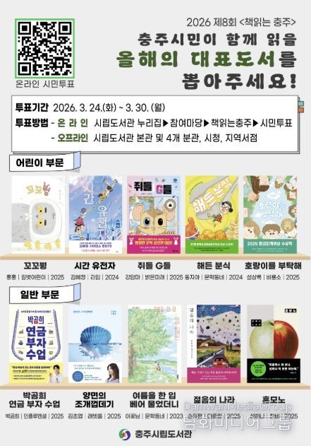 시민행정신문 강갑수 기자 | 충주시립도서관은 오는 30일까지 2026년 제8회 ‘책읽는 충주’ 독서운동의 대표 도서 선정을 위한 시민 투표를 실시한다고 24일 밝혔다.