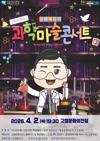 시민행정신문 강갑수 기자 | 고창군에 따르면 고창문화의전당에서 마술쇼 ‘과학마술콘서트’ 공연이 오는 4월2일 저녁 7시30분에 진행된다.